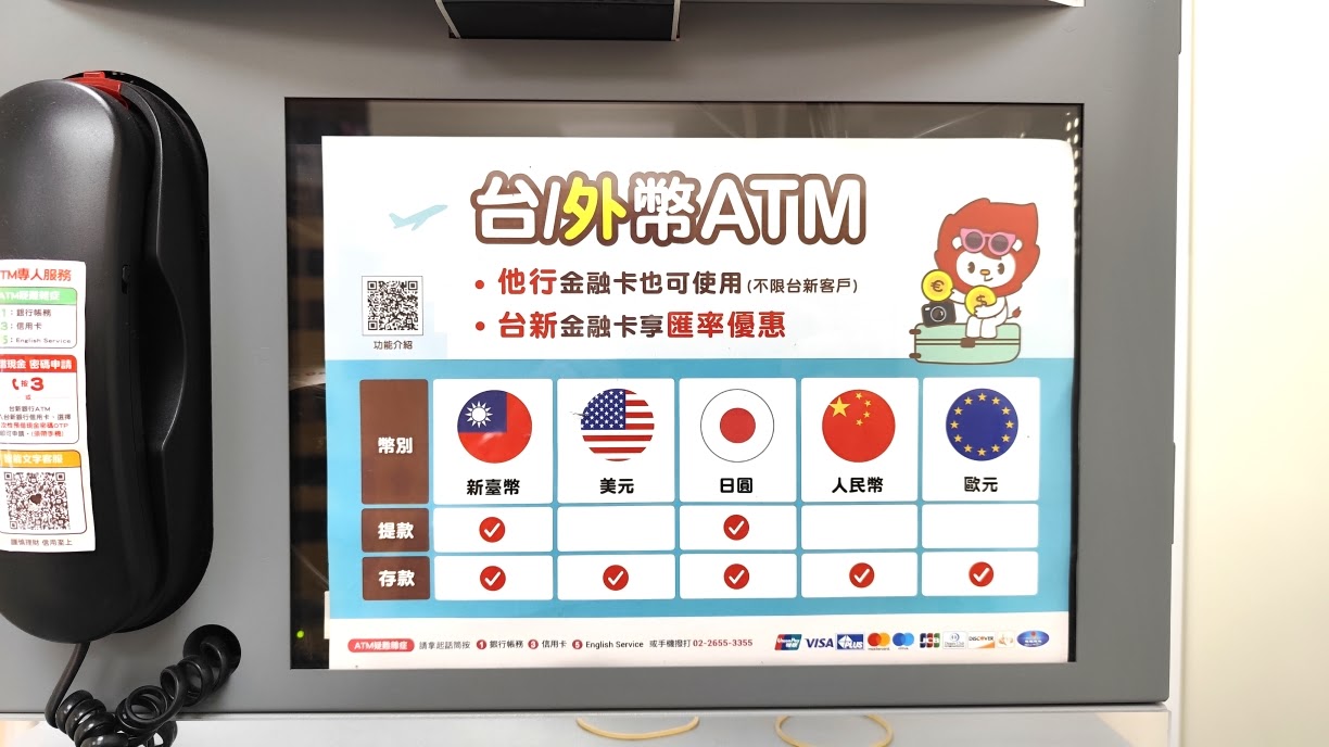 - 請先確認ATM是否支援外幣提領,通常會有相關標示,例如下圖中的ATM公告,有顯示可以進行日幣的提款。