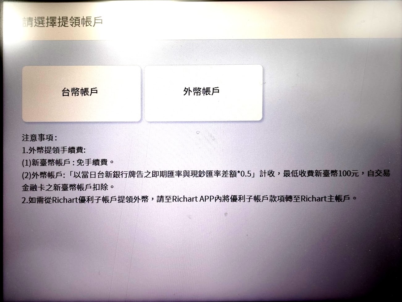 利用超商台新銀行ATM直接從台幣帳戶提領日幣